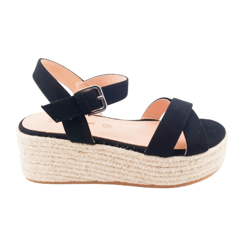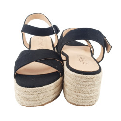 Sandalias STAY de plataforma de yute para mujer en color negro.